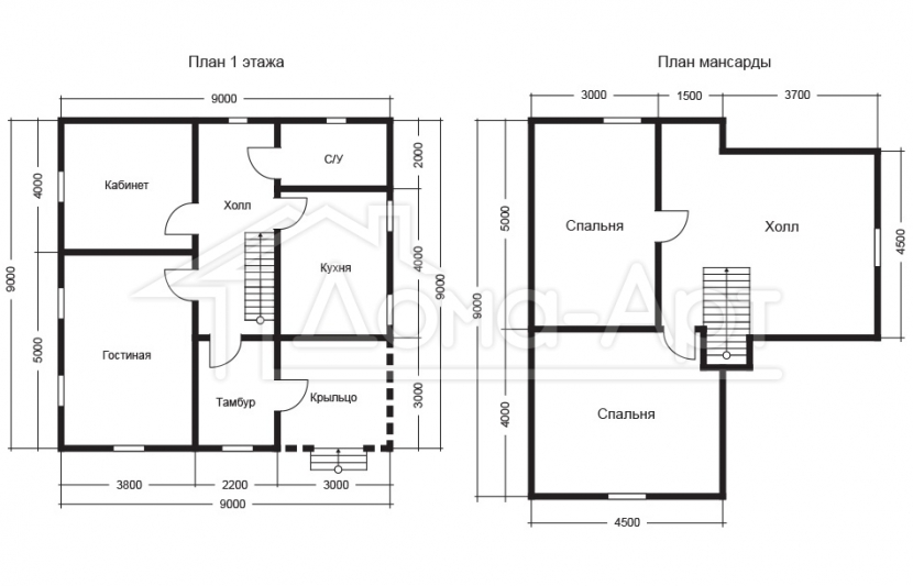 Мансарда (2 этаж) - Отделывается имитацией бруса камерной сушки 19×140 мм.